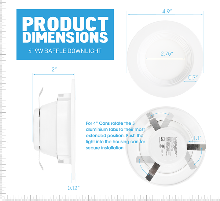 The Parmida LED Technologies™ 4 inch Baffle Design Downlight is an energy-efficient take on a traditional retrofit light. Designed with an internal baffle trim to efficiently trap and shape the light downwards. Manufactured with easy tab installation to provide a simple and secure installation process that is compatible with 4” housing. Made with an impact-resistant, fire-rated polycarbonate trim, this product is light, outstandingly tough and maintains it’s original color over time. It is built with Steady Dim technology and is compatible with most modern dimmers, including Lutron Caseta Wireless systems.