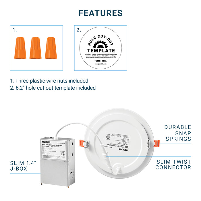 6" LED Recessed Ceiling Slim Panel Light with Junction Box - 12W
