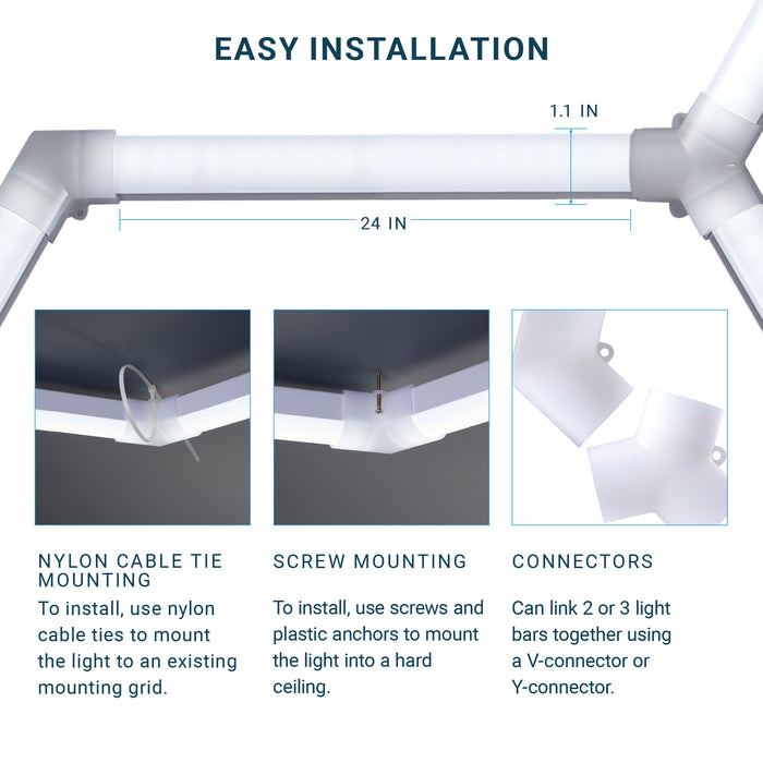 - PREMIUM QUALITY & DURABLE MATERIALS: Each 2FT light bar in our honeycomb lighting system is crafted from high-quality PC materials, ensuring exceptional durability and performance. Built to endure tough conditions, these shop lights offer impact resistance, corrosion resistance, and heat resistance, making them ideal for heavy-use areas. Rated for damp locations, this light can withstand challenging environments, providing a dependable and long-lasting lighting solution for any workspace.